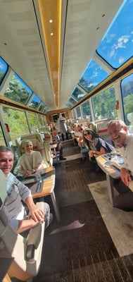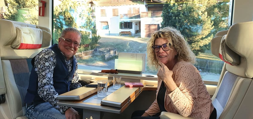 Es ist Samstag, die Fahrt mit dem Glacier Express in der Excellence Class ruft. Zu früher Stunde treten wir die Reise in Richtung Chur an. Unser Benjamin Aurelio hält die Lauber’s so richtig auf Trab und in Schwung, diese gesellen sich ab Chur zu uns. Weiter geht’s durch die eindrückliche und traumhafte Rheinschlucht, den Grand Canyon der Schweiz, durch die Surselva, über den Oberalp-Pass runter nach Andermatt und schlussendlich durch das Oberwallis sowie Mattertal nach Zermatt (Reisezeit knapp 8 Stunden, Länge total 291 km, dies über 291 Brücken und durch 91 Tunnels).