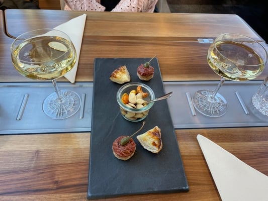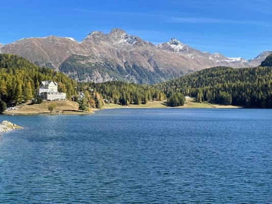 Gutgelaunt traf sich die Vorgruppe in Chur und war voller Tatendrang, verbunden natürlich mit einer grossen Portion Neugier… - ob wohl unser Capitano die Zugskomposition in die richtigen Bahnen lenken würde? Nach prächtiger Fahrt auf der Albula-Linie, über zahlreiche Brücken und Tunnels, durch wunderschöne Waldgebiete mit ihren gelbgefärbten Lärchen, erreichten wir nach zwei Stunden St. Moritz. Der Capitano hatte, nach strengster Eintritts-Prüfung, jederzeit eine ruhige Hand an den joy sticks, durch seine scharfsinnige und äusserst überlegte Vorgehensweise waren wir pünktlich am Ziel. Der prickelnd-frische Apéro an den Gestaden des St. Moritzersees und ein gemütliches Nachtessen im Rest. Lapin Bleu rundeten diesen wunderbaren Tag ab.