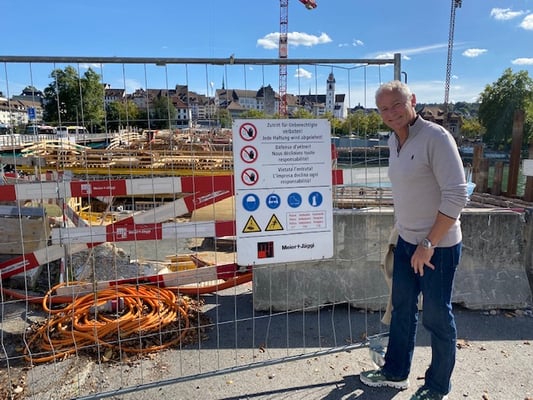 Nach einem feinen Lunch und einer genussvollen Zigarre im Restaurant Kettenbrücke an der Aare in Aarau zeigte uns Matz seine eindrückliche Baustelle „Pont Neuf“, ein neues Wahrzeichen der Stadt. Nach einer informativen Einführung hiess es, Stiefel und Schutzausrüstung anziehen und ab auf die Baustelle. Wir konnten sogar selbst anpacken und z.B. Armierungseisen fixieren. Um Punkt 17:00 war Feierabend und wir gingen weiter zum Italiener in der Altstadt zum Apéro und Pastaplausch. Ein herzliches Dankeschön an Matz für die tolle Organisation!