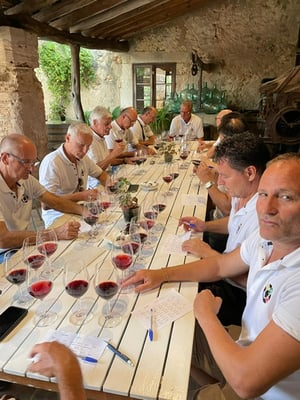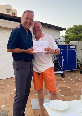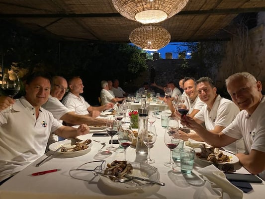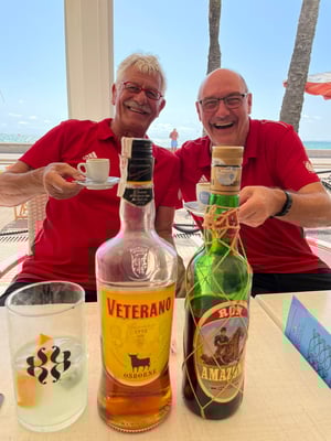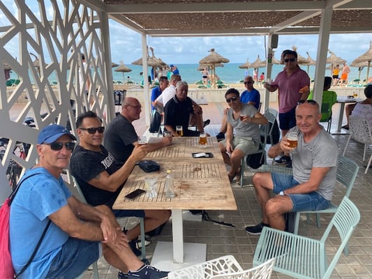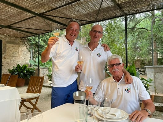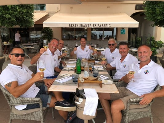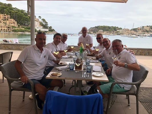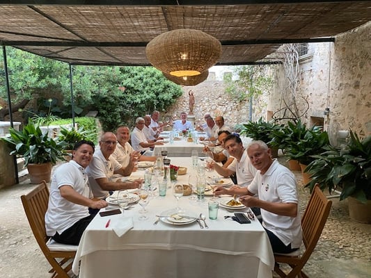 Am Mittwoch ging es auf eine attraktive Fahrt ins Blaue – hauptsächlich gesponsert von den beiden Mannschaftscaptains - mit Extrabus, nostalgischem Zug und historischem Tram bis Port Soller – wo wir kulinarisch verwöhnt wurden. Mit dem Bus gings weiter ins älteste Weingut der Insel: Bodegas Ribas. Ellen zeigte uns die Weinkeller, machte eine spannende Blindgegustation und koordinierte das genussvolle Nachtessen im Garten des Weingutes. So waren alle bereit für den ersten vollen Wettkampftag. Die beiden motivierten Teams LOS CAPITANOS (rot) und LOS OTROS (blau) boten sich ab Beginn ein Kopf-an-Kopf-Rennen, wobei sich die LOS OTROS immer mehr absetzten. Als Matchwinner brillierte Matz und sicherte so seinem Team am Freitag-Nachmittag-Bingo bei Mamasita den souveränen Sieg.