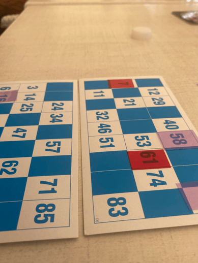 Alle Spieler erhalten zwei BINGO-Karten – wenn möglich alle von der gleichen Serie (alle schwarz oder alle blau, nicht mischen) - 1 senkrecht - 1 waagrecht - 2 waagrecht - 3 waagrecht - 4 waagrecht - 5 waagrecht - 6 waagrecht hat, dieses Team kriegt je 10 Punkte Der Spieler muss laut und deutlich „BINGO“ rufen. Wer schneller ist, hat die Punkte. Sind verschiedene Spieler genau gleichzeitig, werden die Punkte geteilt Die Punkte an die Teams werden wir folgt vergeben: 20 Punkte für Sieger, 10 Punkte für Verlierer, 15 Punkte bei Gleichstand